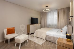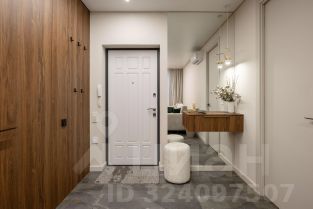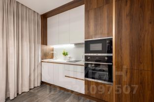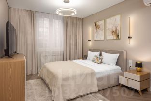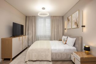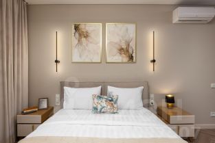 Спальня выдержана в светлых тонах с акцентом на текстиль из натуральных тканей и мебелью из дерева. Кровать с ортопедическим матрасом и подъемным механизмом с ящиком для хранения, стильные светильники и постеры создают атмосферу покоя и тишины. Большой ТВ 50 в спальне, позволяющий наслаждаться любимыми фильмами прямо из кровати. И конечно же супер вместительные встроенные шкафы во всю стену закроют любой вопрос по хранению вещей. Кондиционер.