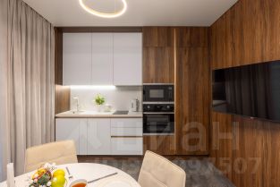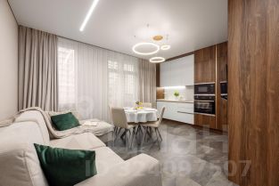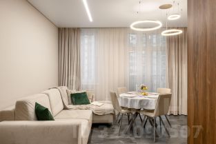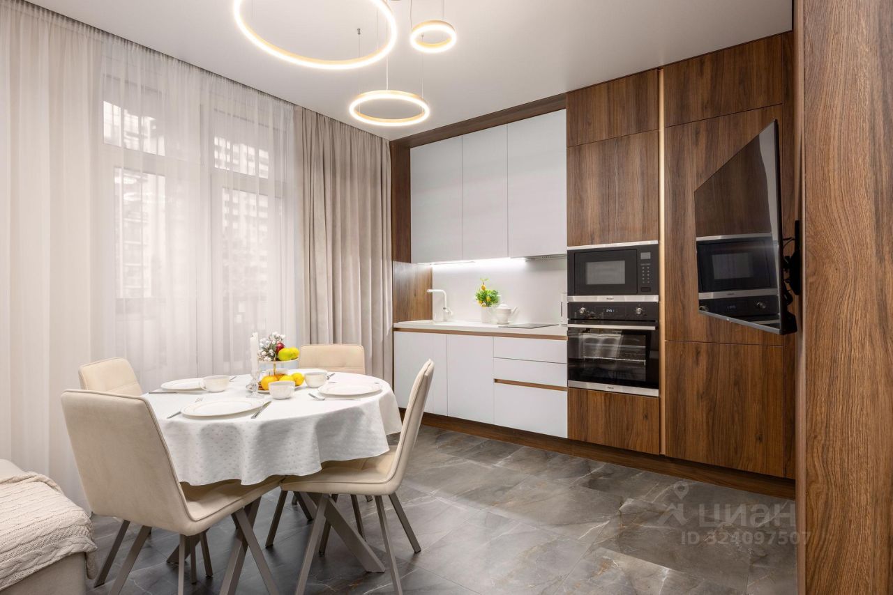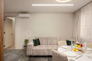 В зоне отдыха — удобный и большой диван, раскладывающийся в кровать и круглый обеденный стол, ТВ 43 на поворотном устройстве. Два больших окна и уютный балкон наполняют пространство естественным светом, а шторы из натуральных тканей добавляют мягкости интерьеру. Теплые полы с вай фай управлением. Кондиционер.