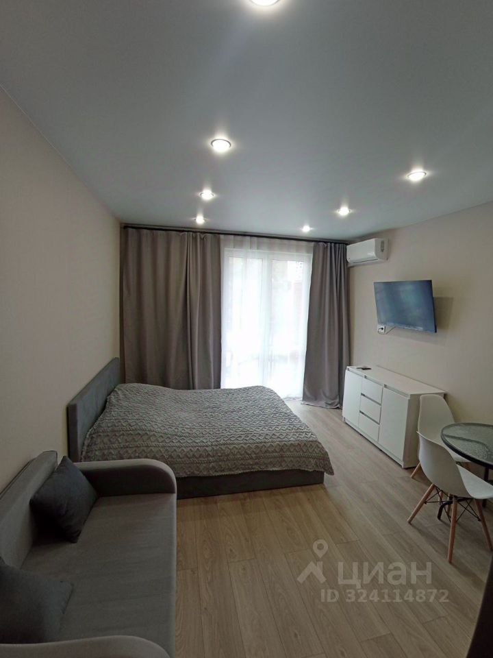 Студия с евроремонтом: все выполнено в современном стиле с использованием качественных материалов. В квартире есть все необходимое для комфортного проживания: встроенная кухня, современная сантехника, а также совмещенный санузел. Изюминка квартиры — уютный балкон, где можно наслаждаться свежим воздухом и красивыми видами.