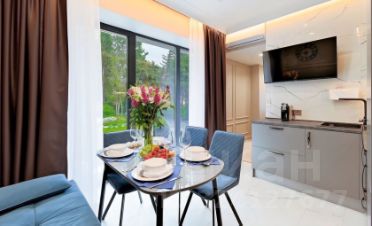 Продаются стильные апартаменты площадью 40 м² в элитном комплексе на первой береговой линии. Территория занимает 1,6 га и утопает в реликтовом хвойном парке: кипарисы, сосны, пихты и ели создают идеальный климат и атмосферу уединённого курорта.