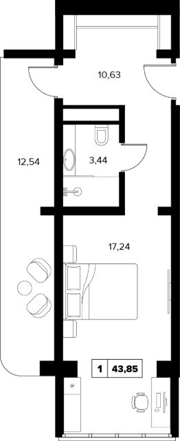 В продаже номер площадью 43.85 м² на 8 этаже в премиальном экокомплексе Белые Ночи.