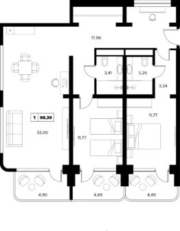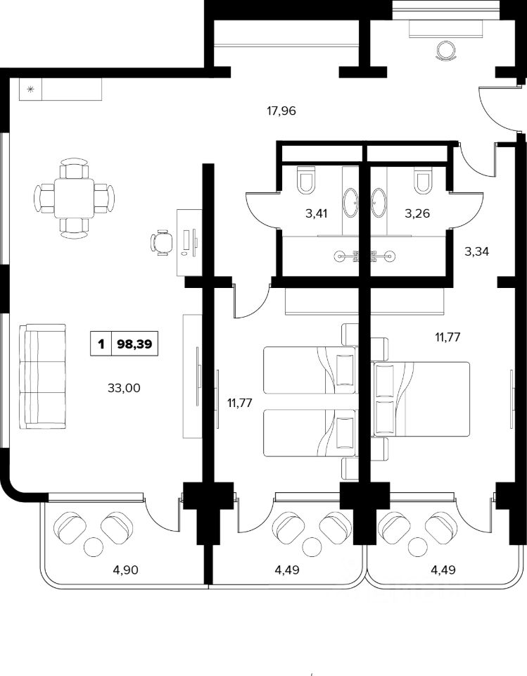 В продаже номер площадью 98.39 м² на 8 этаже в премиальном экокомплексе Белые Ночи.
