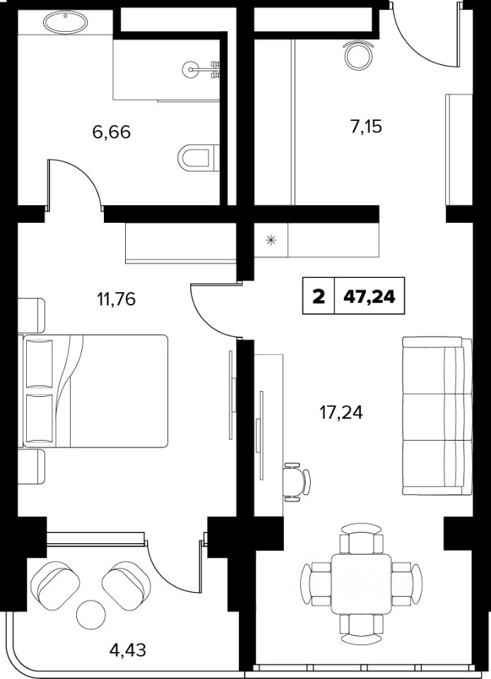 В продаже номер площадью 47.24 м² на 11 этаже в премиальном экокомплексе Белые Ночи.