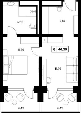 В продаже номер площадью 46.29 м² на 11 этаже в премиальном экокомплексе Белые Ночи.