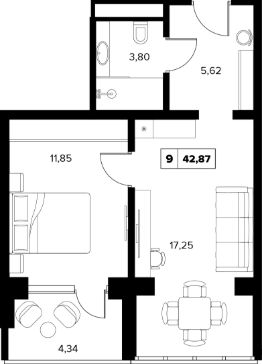 В продаже номер площадью 42.86 м² на 11 этаже в премиальном экокомплексе Белые Ночи.