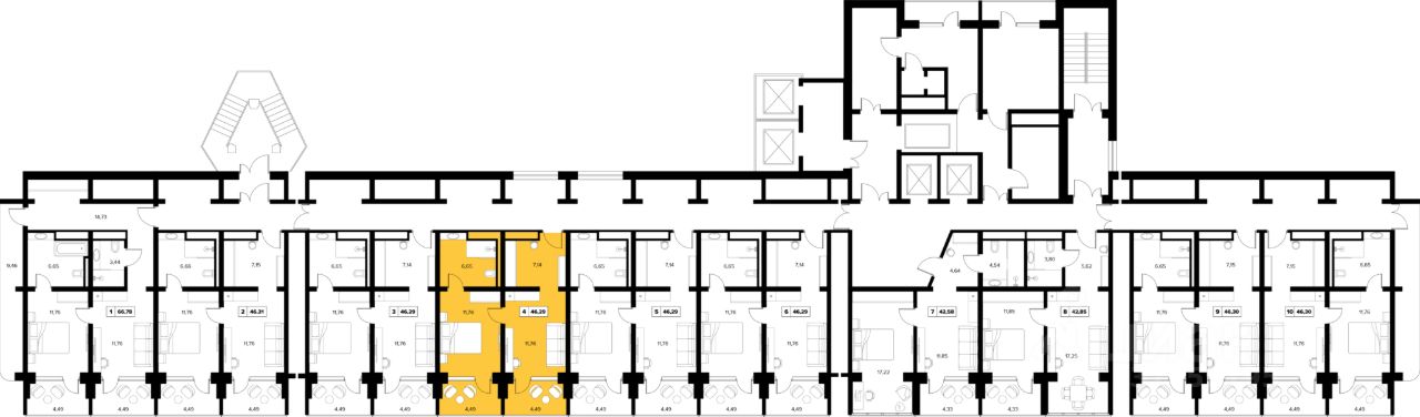 В продаже номер площадью 46.29 м² на 16 этаже в премиальном экокомплексе Белые Ночи.
