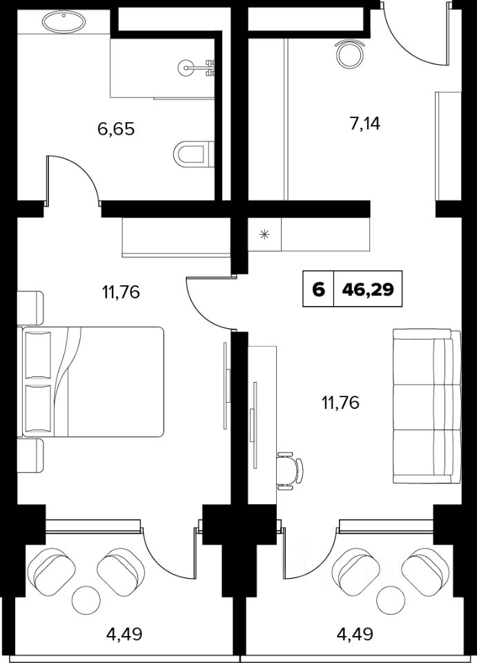 В продаже номер площадью 46.29 м² на 16 этаже в премиальном экокомплексе Белые Ночи.