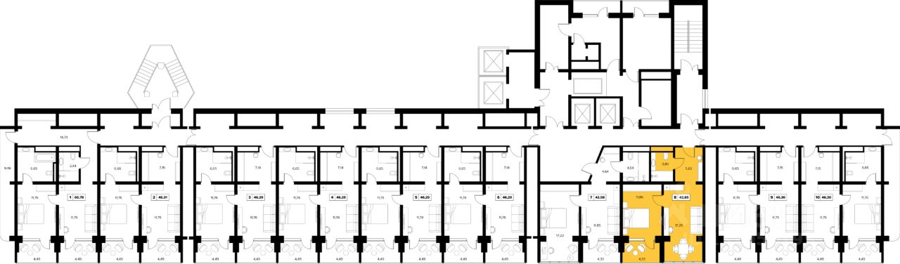 В продаже номер площадью 42.85 м² на 16 этаже в премиальном экокомплексе Белые Ночи.