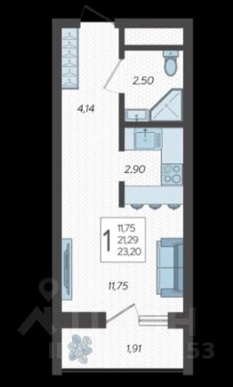 Квартира находится на 5 этаже 19-этажного дома, построенного в 2023 году. Общая площадь составляет 24 кв. м, с просторной кухней в 10 кв. м.