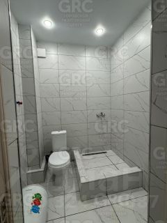 Совмещенный санузел выполнен в светлых тонах и оснащен современной сантехникой.