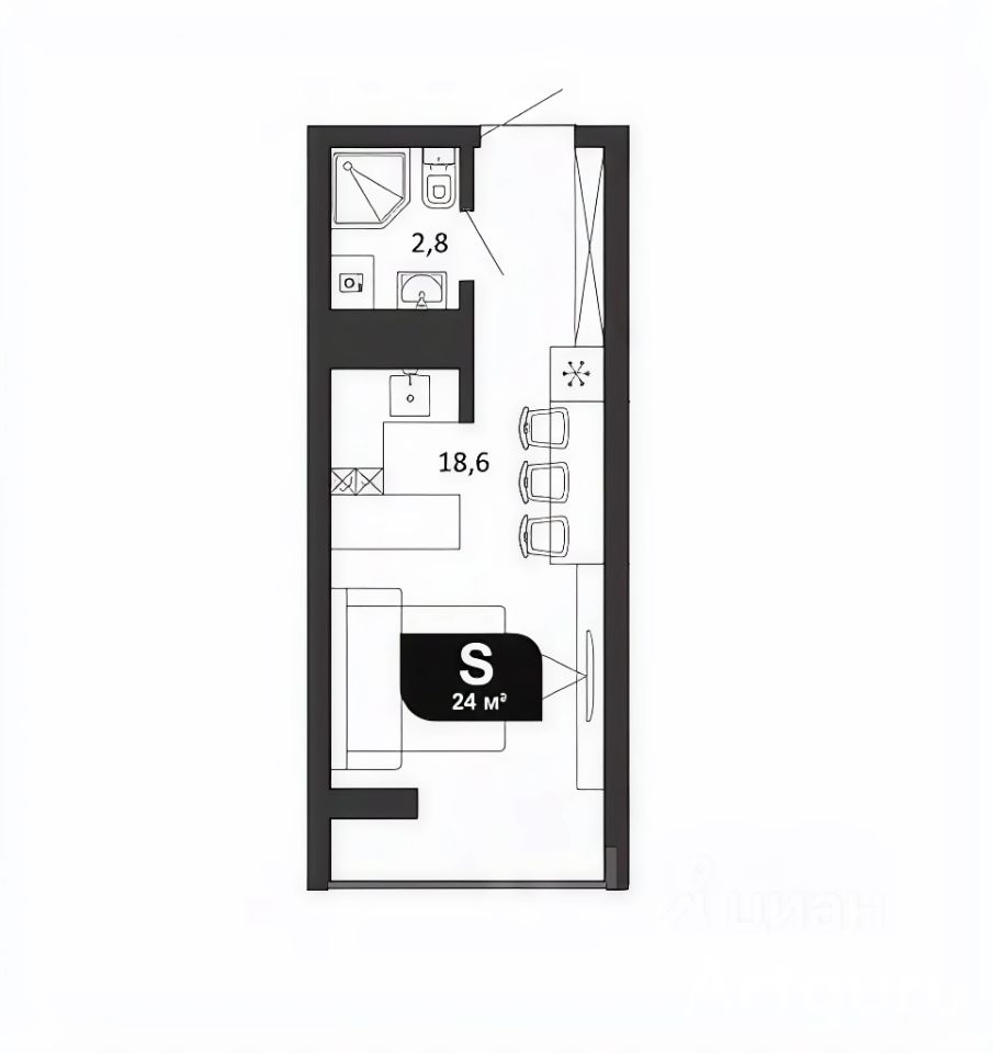 Просторная и уютная студия площадью 24 кв.м по адресу ул. Ясногорская, 16/6к5 (р-н Бытха), на 6 этаже 19-этажного монолитного дома 2023 года постройки.