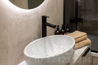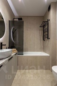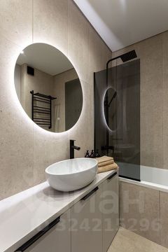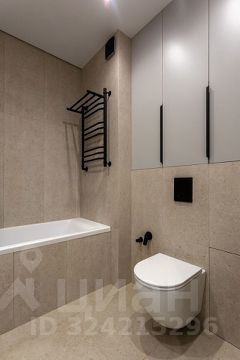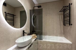 * Санузел с полноценной ванной, импортной сантехникой и встроенной мебелью.