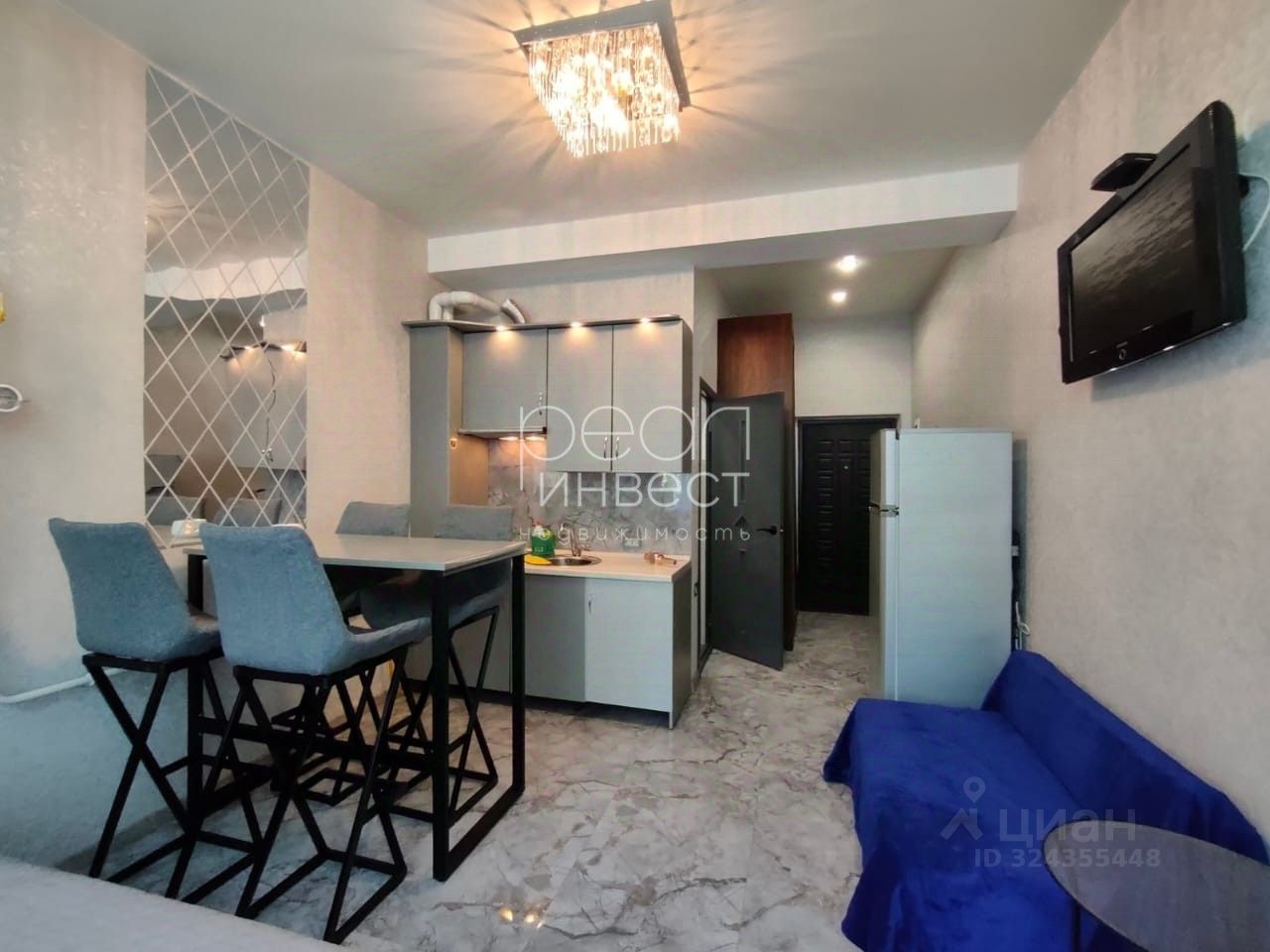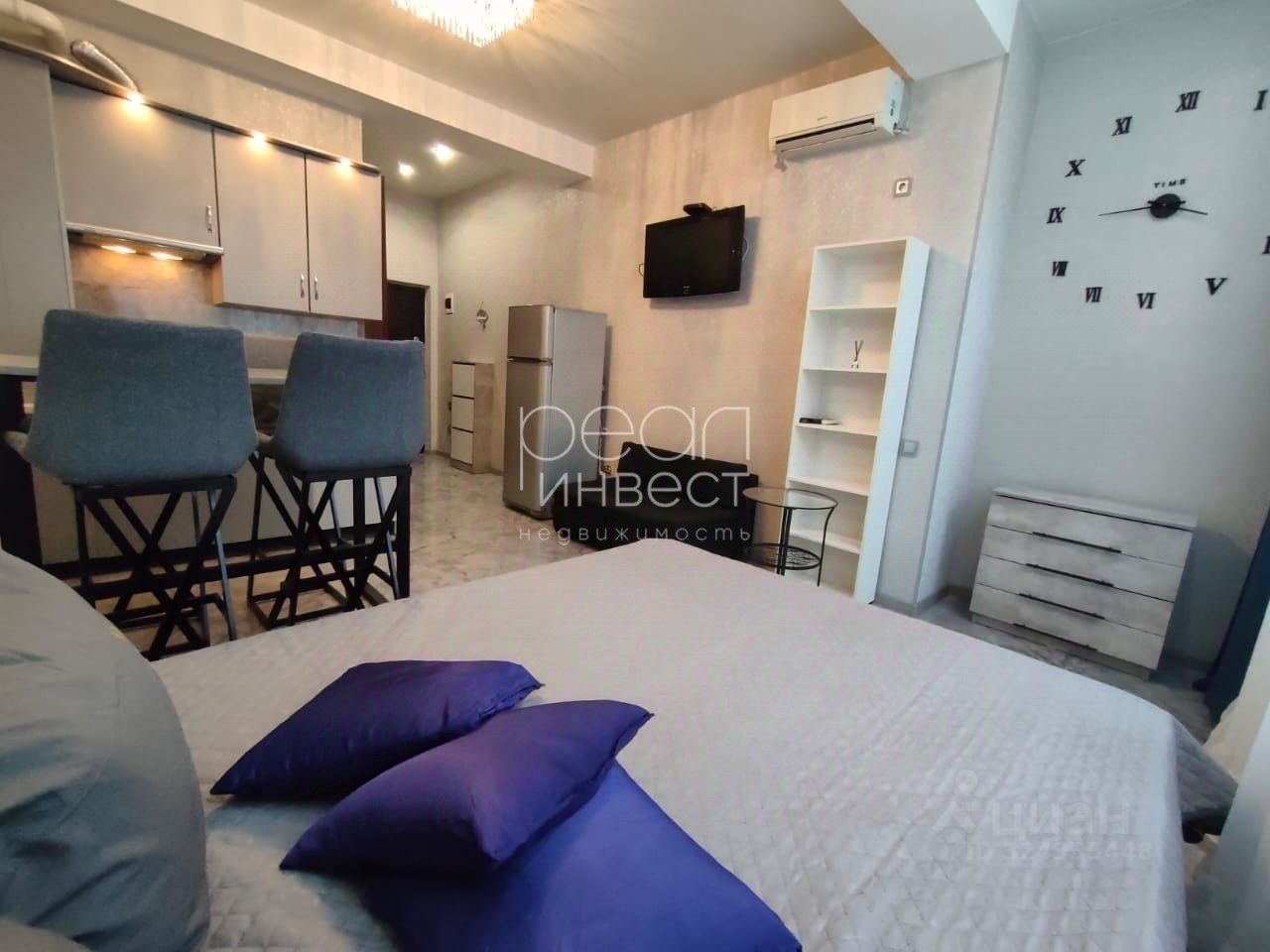 Площадь квартиры 27 м², дизайнерский интерьер, свежий ремонт, новая мебель и техника.