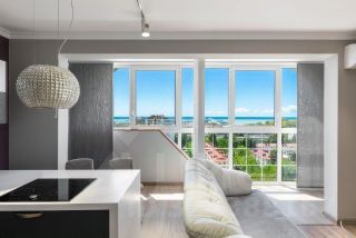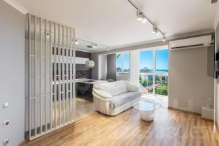 Функциональная планировка включает просторную кухню-гостиную, две изолированные спальни и совмещённый санузел. Квартира светлая и уютная благодаря большим панорамным окнам. Из окон открывается живописный вид на Чёрное море, Морской порт, парк Ривьера и центр города.