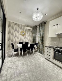Квартира радует глаз дизайнерским ремонтом и продуманной планировкой. В просторной гостиной можно разместить все необходимое для комфортного отдыха, а уютная спальня обеспечивает тишину и покой. Кухня площадью 5 кв. м оснащена всей необходимой техникой и мебелью, что делает ее функциональной и удобной. Санузел современный и стильный, выполнен в светлых тонах.