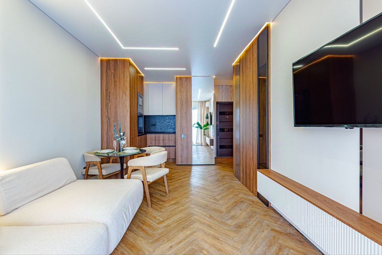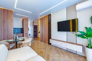 Полностью оснащена техникой ( встроенный холодильник, духовой шкаф, микроволновая печь, индукционная плита, стиральная и посудомоечная машина, Смарт ТВ, 2 сплит системы. Все для комфортного проживания.