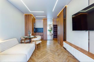 В квартире продуманно все! Дизайнерский ремонт, в котором разумно используется каждый сантиметр квартиры: много мест хранения, много разных сценариев света, вся мебель "в потолок" и встроенная (дизайнерский эксклюзив), использовались самые современные материалы и технологии: встроенный тропический душ и кран, теневой половой и потолочный плинтус, внутрипольные мощные конвекторы ( вместо батарей),теплая стена в ванной ( вместо немодного полотенцесушителя), парящий потолок с подсветкой и световыми линиями и многое другое!