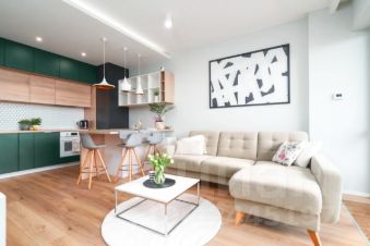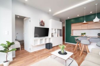 В квартире выполнен дорогой дизайнерский ремонт, установлена мебель и вся необходимая техника для комфортного проживания. Из окон открывается прекрасный вид на новый парк-сквер, а с балкона можно увидеть море и набережную реки "Псахе".