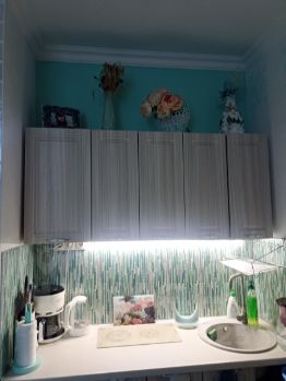 В квартире остаётся вся мебель: шкаф в прихожей, шкаф витринный, стол и два стула, тумба, кухня, столик журнальный, диван раздвижной, шкаф-купе большой зеркальный,, кровать с подъёмным механизмом, кроме ( консоль и этажерки).