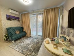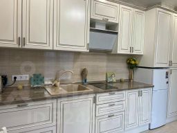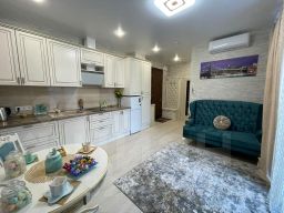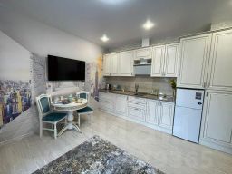 В квартире выполнен дизайнерский ремонт класса Deluxe с использованием отделочных материалов известных брэндов и под дизайнерским надзором. Мебель производства Италии, встроенная техника производства Германии. Спальня, просторная кухня-гостиная и терраса с великолепным видом на море.