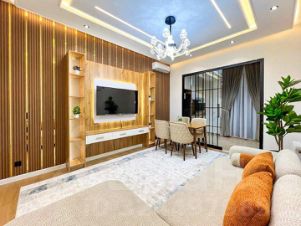 Интерьер — свежий, аккуратный, с характером: светлые стены, натуральное дерево в отделке, тёплый пол, продуманное освещение. В гостиной — деревянные панели и ниши под телевизор, кухня почти как новая, спальни просторные, с уютной атмосферой и комфортом. Всё выглядит так, так как делали для себя, с вкусом и вниманием к деталям.