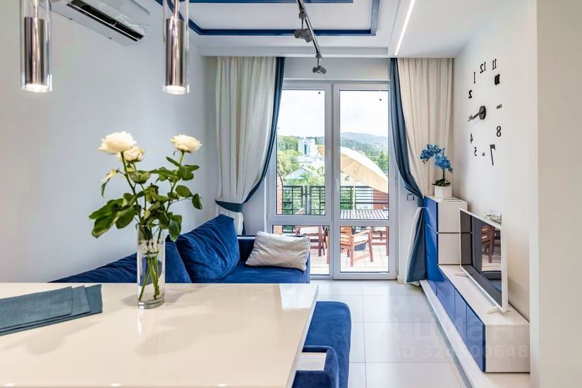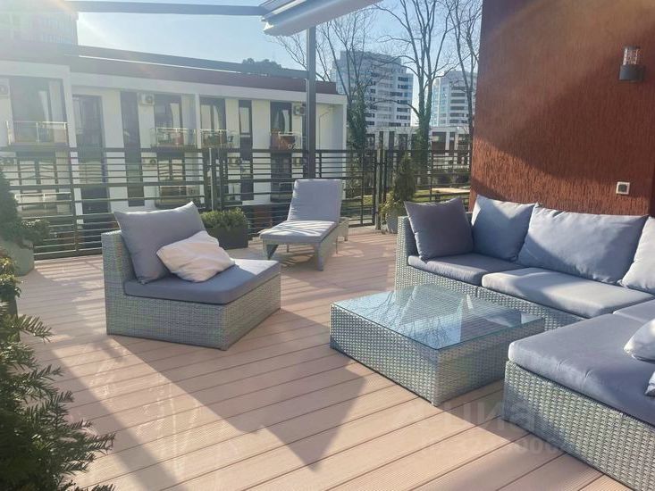 Новый жилой комплекс бизнес класса касабланка, дизайнерская квартира с собственной террасой 45 м с панорамным видом на море и горы, на террасе обеденная зона, мягкая модульная мебель, шезлонг, озеленение. Терраса закрыта раздвижными крышами с подсветкой, что позволяет отдыхать в любую погоду. Комплекс имеет подогреваемый бассейн (работает сезонно) 2 детские площадки, зону для барбекю, большое количество мест для парковки автомобилей и велосипедов, охраняемая территория с вековыми деревьями, ландшафтным дизайном с ночной подсветкой.