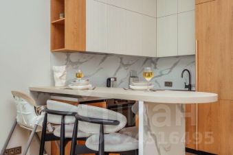 Кухня и кухонная зона с барным столом никого не оставит равнодушным, оснащена всем необходимым для приготовления вкусных блюд, в том числе и капсульной кофемашиной. На кухне также есть посудомоечная машина.