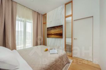 В спальне - большая двуспальная кровать (180-210) с ортопедическим матрасом, телевизор 65", гардеробная с подсветкой каждой полки и хозяйский санузел.