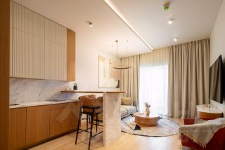 От уютных *однокомнатных* апартаментов до *просторных* вариантов с тремя спальнями. Интерьеры светлые, с панорамными окнами, натуральным мрамором и продуманными деталями. Виды на море и природу завершают образ безупречного комфорта.