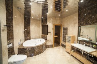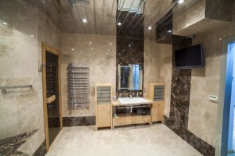 Новый качественный ремонт из натуральных дорогостоящих материалов. В отделке использовались: натуральный мрамор, керамогранит, дерево, натуральный камень.