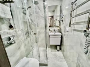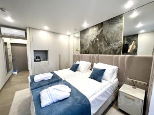 Интерьер апартаментов выполнен в современном дизайнерском стиле. Вся мебель и техника подобраны с любовью и вниманием к деталям. Пространство продумано до мелочей, чтобы вам было комфортно жить и наслаждаться каждым мгновением. Санузел оснащен качественной сантехникой и стильной отделкой.