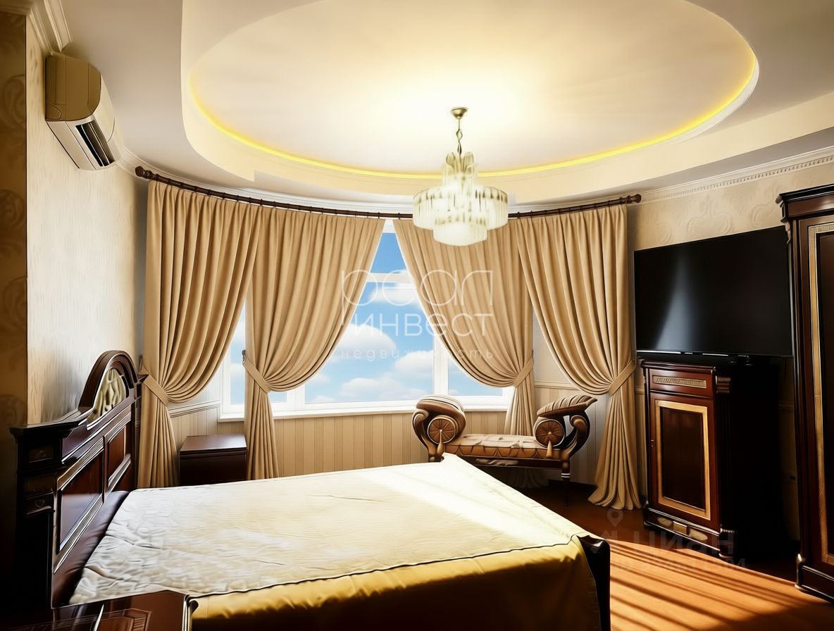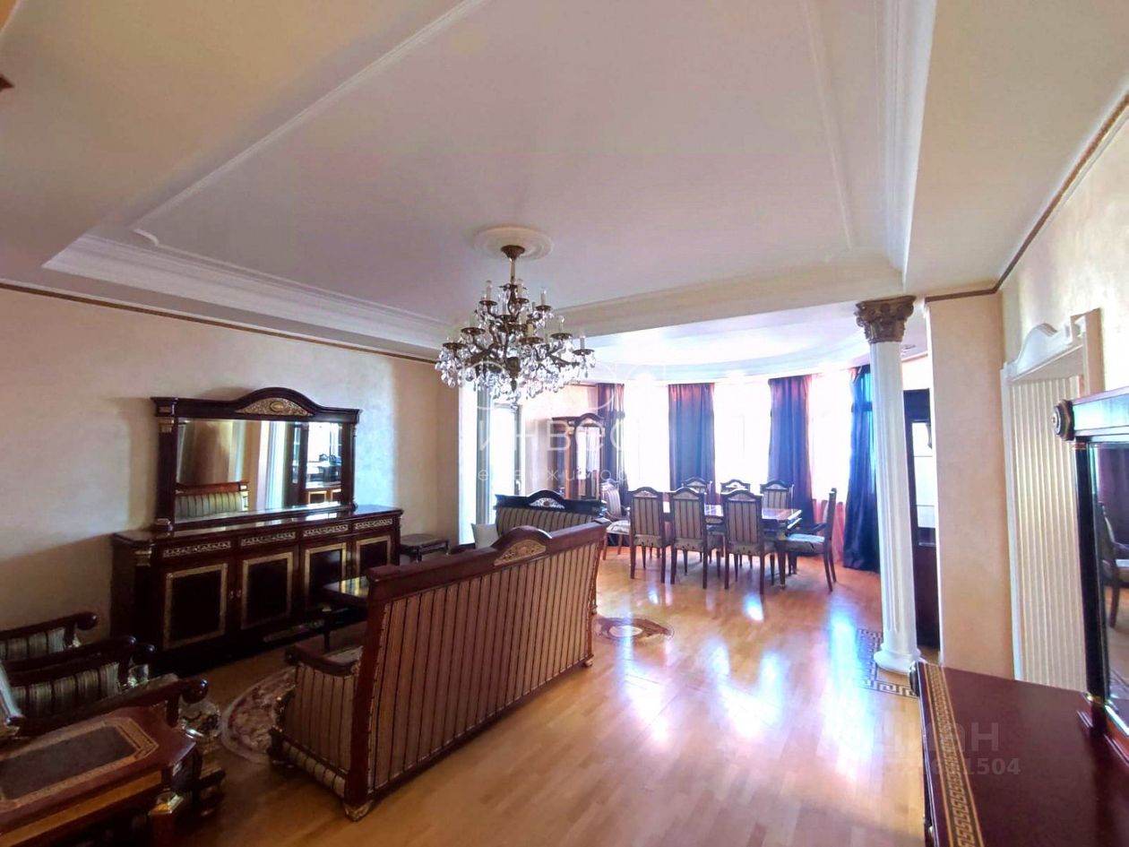 В квартире три спальни, большой зал, кухня, кладовая, три сан.узла. По периметру балконы.