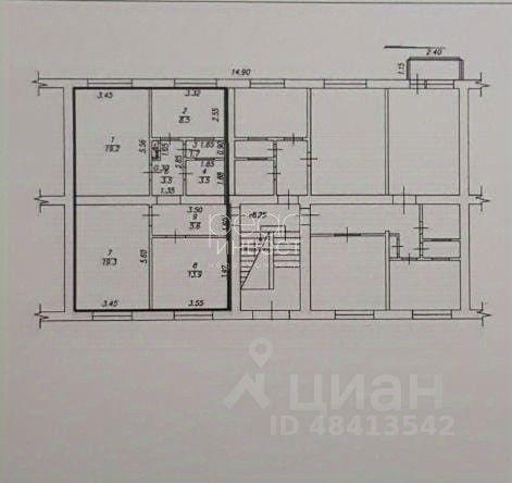 Арт. 125287744 Квартира для большой семьи, с высокими потолками 3,2 м. Три изолированные комнаты. Просторная кухня. Раздельный санузел.