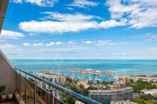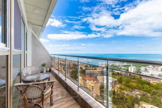 Вид — главный аргумент, который не требует слов. С высоты пентхауса вы видите одновременно море и город: акваторию бухты с яхтами у причалов, изгиб набережной, зелёные склоны вдали, огни центра после заката — всё это меняется в зависимости от времени суток, как смена декораций в спектакле, где вы — не зритель, а главный герой.