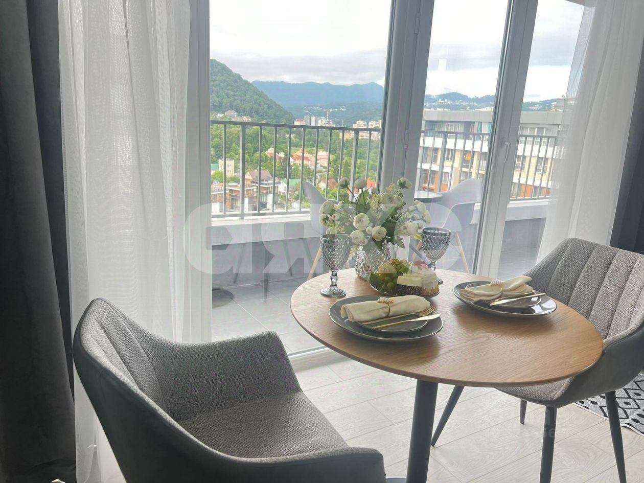 Продаётся уникальная квартира в жилом комплексе, расположенном практически на побережье Чёрного моря. Квартира находится на 13 этаже и имеет балкон площадью более 16 м². Балкон имеет два выхода с разных сторон, что делает квартиру ещё более удобной и функциональной. Из окон квартиры открываются прекрасные виды на двор с бассейном, горы и море.