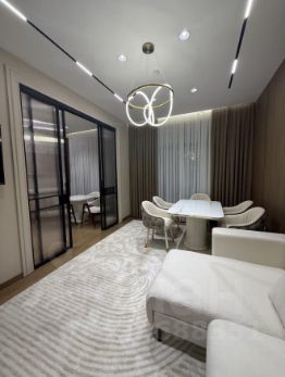 В квартире выполнен дизайнерский ремонт, который сочетает в себе стиль и функциональность. Продуманная планировка позволяет максимально эффективно использовать пространство. Все комнаты обставлены современной мебелью и оснащены необходимой техникой. Санузел выполнен в современном стиле с использованием качественных материалов.