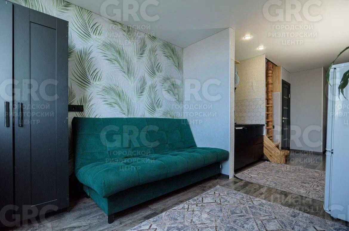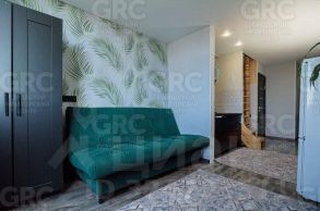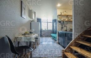 По документам 22 кв.м по полу с высотой потолка 4,5м (плюс второй уровень).