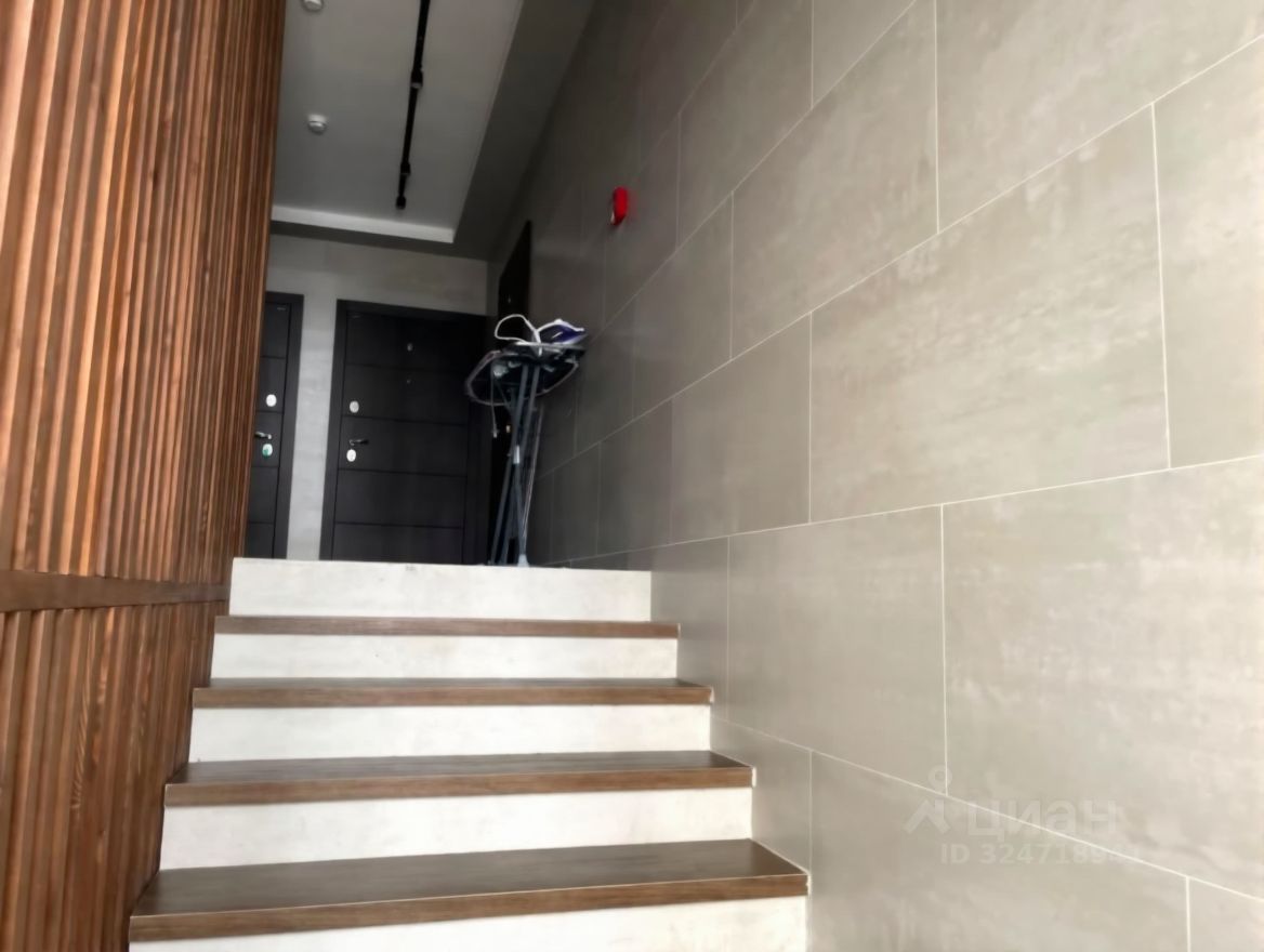 Стильная однокомнатная квартира площадью 34 м² расположена на втором этаже современного дома, сданного в эксплуатацию в 2021 году.