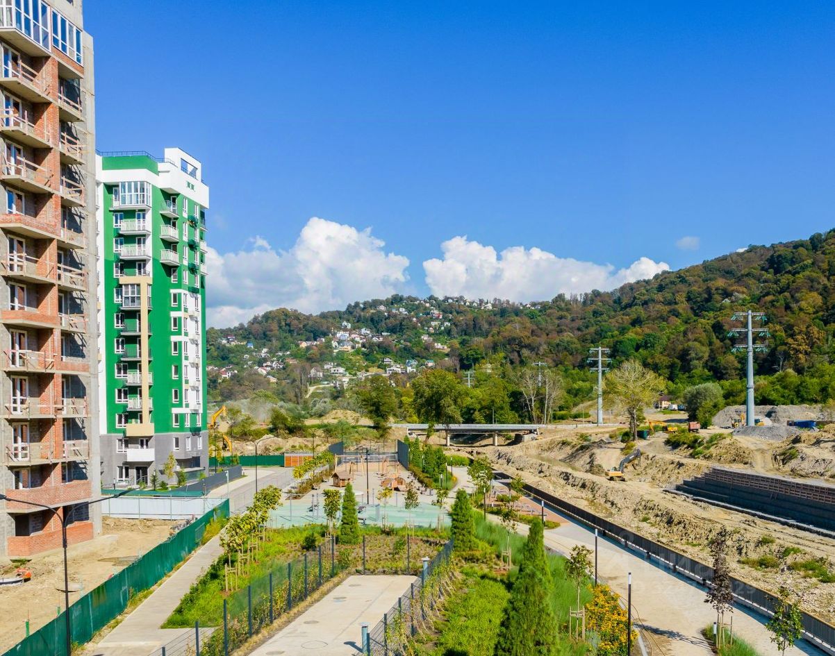 Рядом благоустроенная набережная реки Кудепста с зонами для отдыха и уютными беседками для пикников