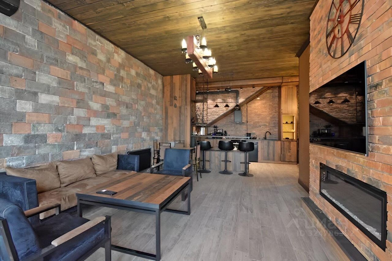 Просторная гостиная, совмещённая с кухней, создаёт идеальное пространство для семейного отдыха и приёма гостей.