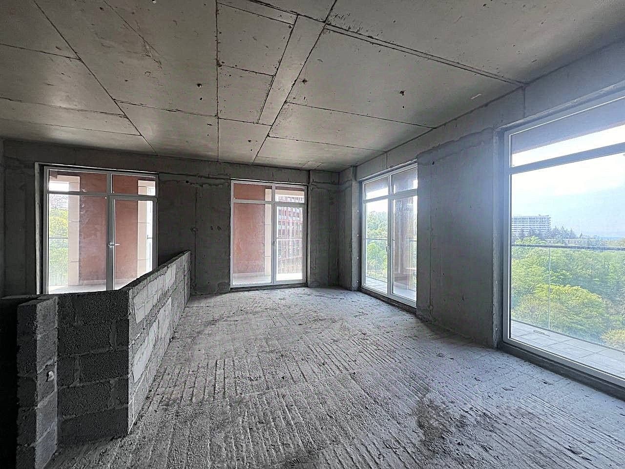 Просторная угловая квартира свободной планировкой, с витражным остеклением в пол. Во всех комнатах есть выход на балкон. Видовые характеристики открываются во все стороны -на национальный парк, город и придомовую территорию. Высота потолков 3.10 метра.