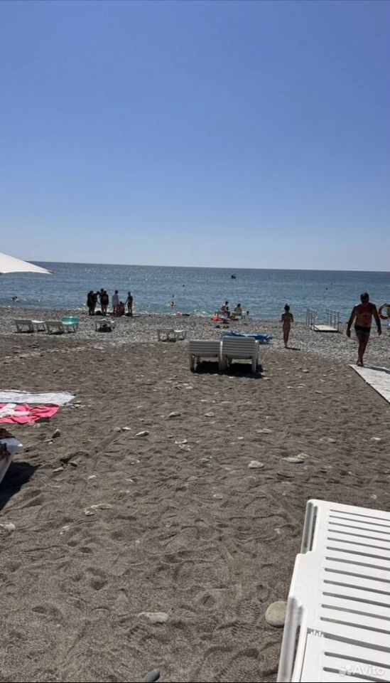 Широкий галечный пляж находится всего в 5 минутах неспешной ходьбы от дома, на одном из немногих мысов побережья Сочи, благодаря чему жители имеют уникальную возможность купаться в чистом, всегда омываемом море, где никогда не застаивается вода!