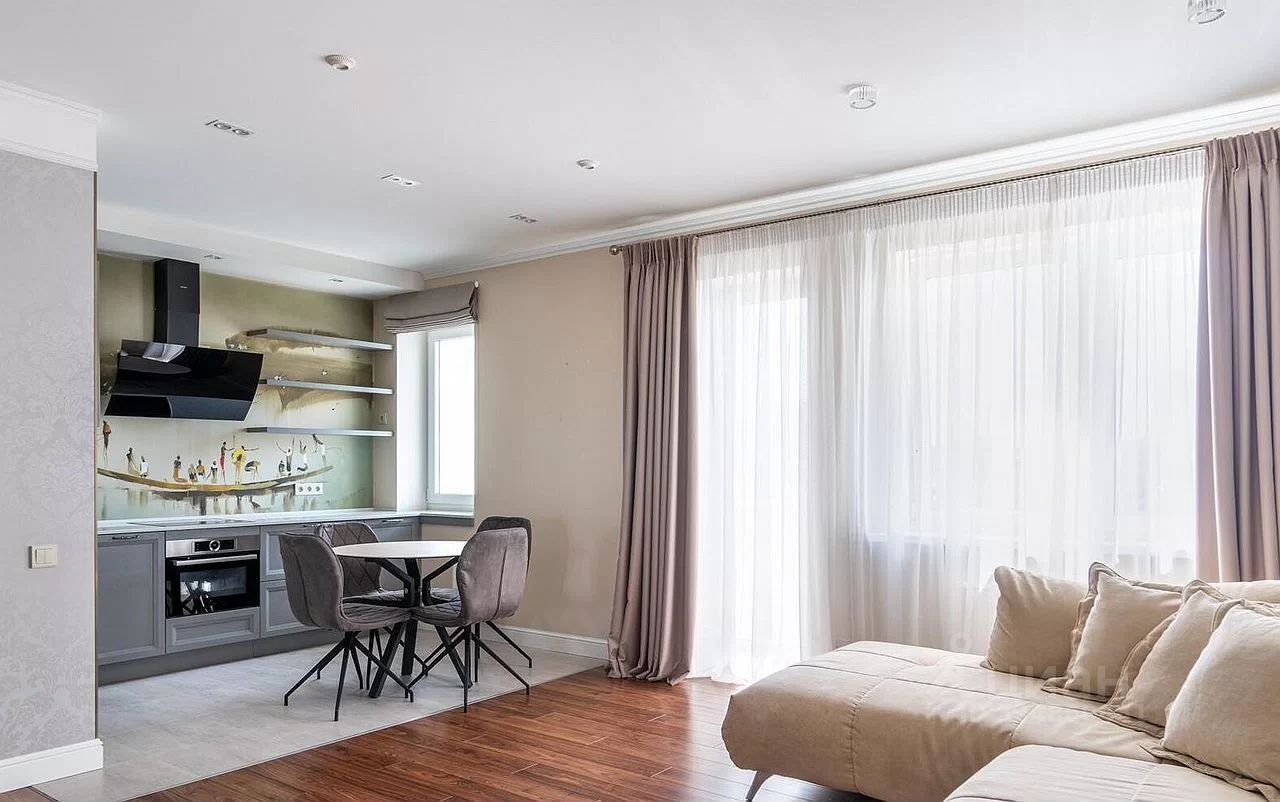- пpocтоpнaя куxня-гостиная c выxoдoм нa бaлкoн,