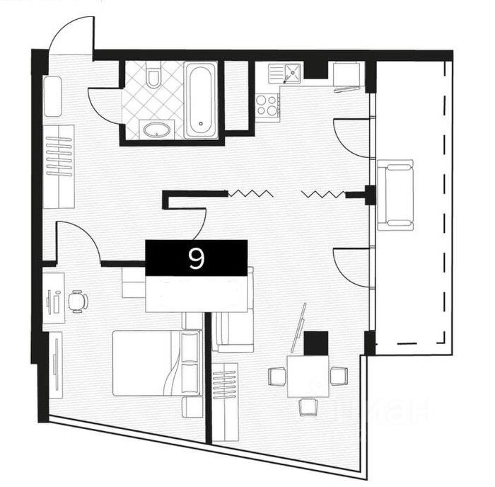 Самое просторная планировка в проекте. Панорамное остекление, просторный балкон, угловая планировка. Можно спланировать две спальни, кухню гостиная.