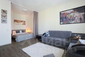 Зонированная спальная ниша с двухспальной кроватью и удобный диван-кровать
