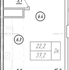 - Просторная и светлая студия: функциональная планировка обеспечивает максимум пространства и комфорта.
