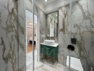 - Современная ванная комната с душевой кабиной и гардероб-кладовая для вашего удобства.