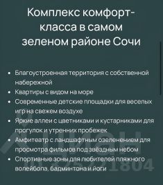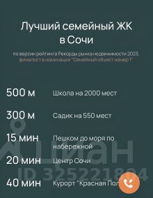 Продаю готовую новую квартиру в самом зеленом районе Сочи (получили ключи в 2024). Из всех прочих плюсов, у нашего ЖК есть главный приоритет- это равнина с быстрым, прямым и комфортным выходом к морю! Хоть отдыхать, хоть жить, хоть приобрести как инвестицию - это 100% лучший вариант. Наша квартира-студия небольшая, вместе с балконом 23 кв.м. на комфортном 3-м этаже. Тут безопасно Закрытая территория, выход из подъезда на собственную набережную реки, по которой 10 минут пешком и ты на море! Благоустройство на высочайшем уровне. Ребят! Сейчас в процессе строительство обхода, который к 2027 году позволит за считанные минуты добираться без пробок в районы Сочи, Поляну и к выезду из города. Этот факт значительно повысит стоимость недвижимости в нашем ЖК! Лучший семейный ЖК в Сочи по версии рейтинга Рекорды рынка недвижимости 2023, финалист в номинации "Семейный объект номер 1 Инфраструктура здесь- мечта! Тихо, ровно, вдоль речки к морю, лучший огромный новый детский сад, школа, магазины, пункты выдачи, кафе и т.д. Экологичные современные детские площадки в большом количестве, спортивные площадки для йоги, волейбола, теннниса, тренажеры! Закрытая парковка! Зоны отдыха! И конечно чистейший заповедный воздух, пение птиц, прохлада от реки и соленый морской бриз! Наша семья подросла за время (брали в ипотеку на этапе стройки) и хотим площадь побольше успеть приобрести и дать возможность еще кому-то купить нашу квартиру по относительно небольшой цене. Ремонт мы не делали, всё в первоначальном виде как будто только от застройщика (только цены у застройщика уже от 12 млн). Ипотека семейная еще не доплачена, поэтому доли детям еще пока не выделены и значит проблем с оформлением у покупателей не вызовет (т.к. мы менять будем на большую площадь, отказов в согласовании соц.фонда не должно быть). Поэтому пишите, звоните! Будем рады продать именно вам!