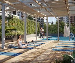 Аквазона только часть уникальной инфраструктуры "Лестории", которая включает в себя также благоустроенную территорию с пятьюдесятью функциональными зонами для прогулок, отдыха и занятий спортом, видовые террасы на крышах для отдыха, работы и встреч с друзьями, а также пространство набережной Кудепсты с шезлонгами и перголами.
