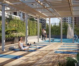 Аквазона только часть уникальной инфраструктуры "Лестории", которая включает в себя также благоустроенную территорию с пятьюдесятью функциональными зонами для прогулок, отдыха и занятий спортом, видовые террасы на крышах для отдыха, работы и встреч с друзьями, а также пространство набережной Кудепсты с шезлонгами и перголами.